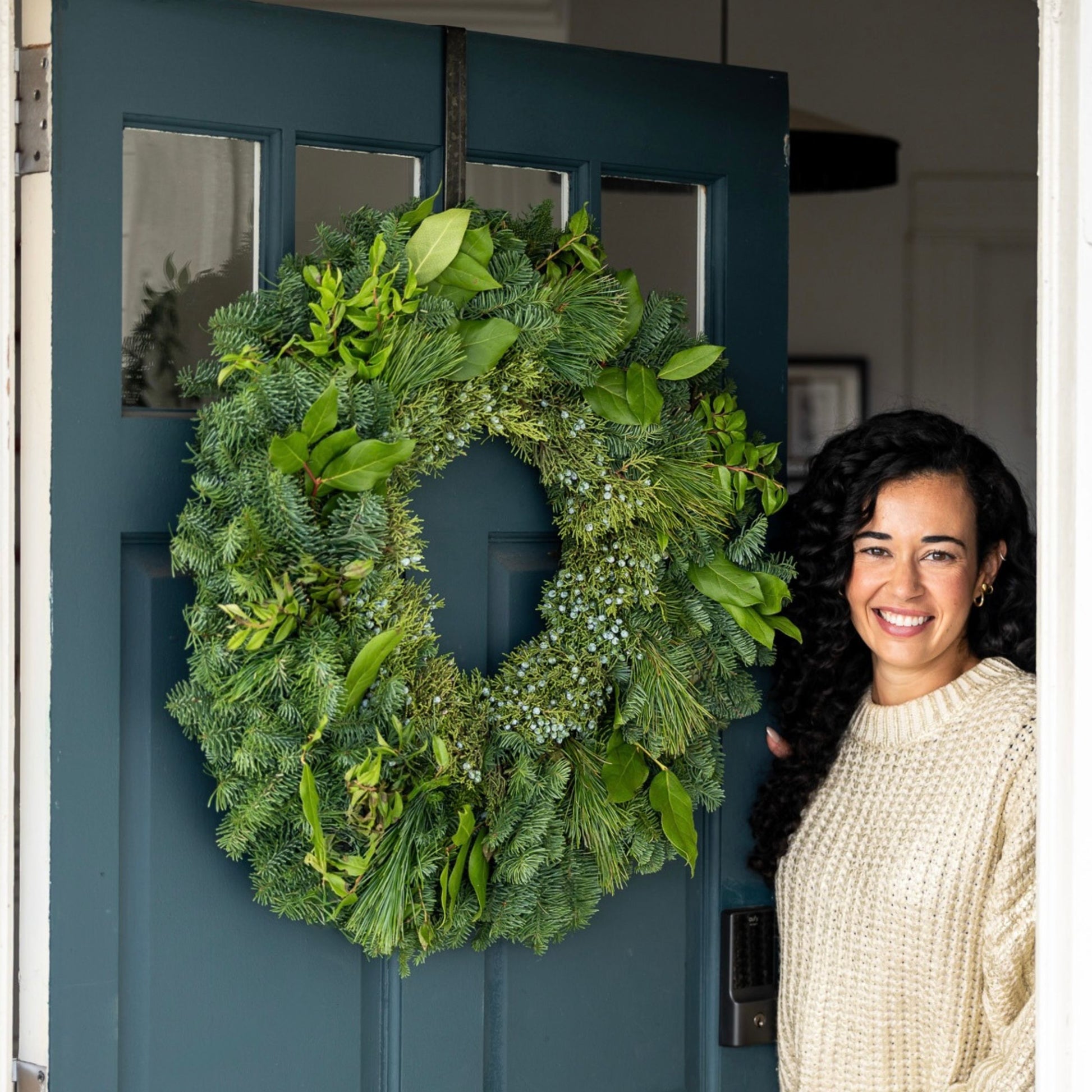 Each piece is hand assembled within days of harvest, so what arrives at your door is alive with scent and color. Hang it outside where the air is cool, and it will stay fresh for about six weeks.