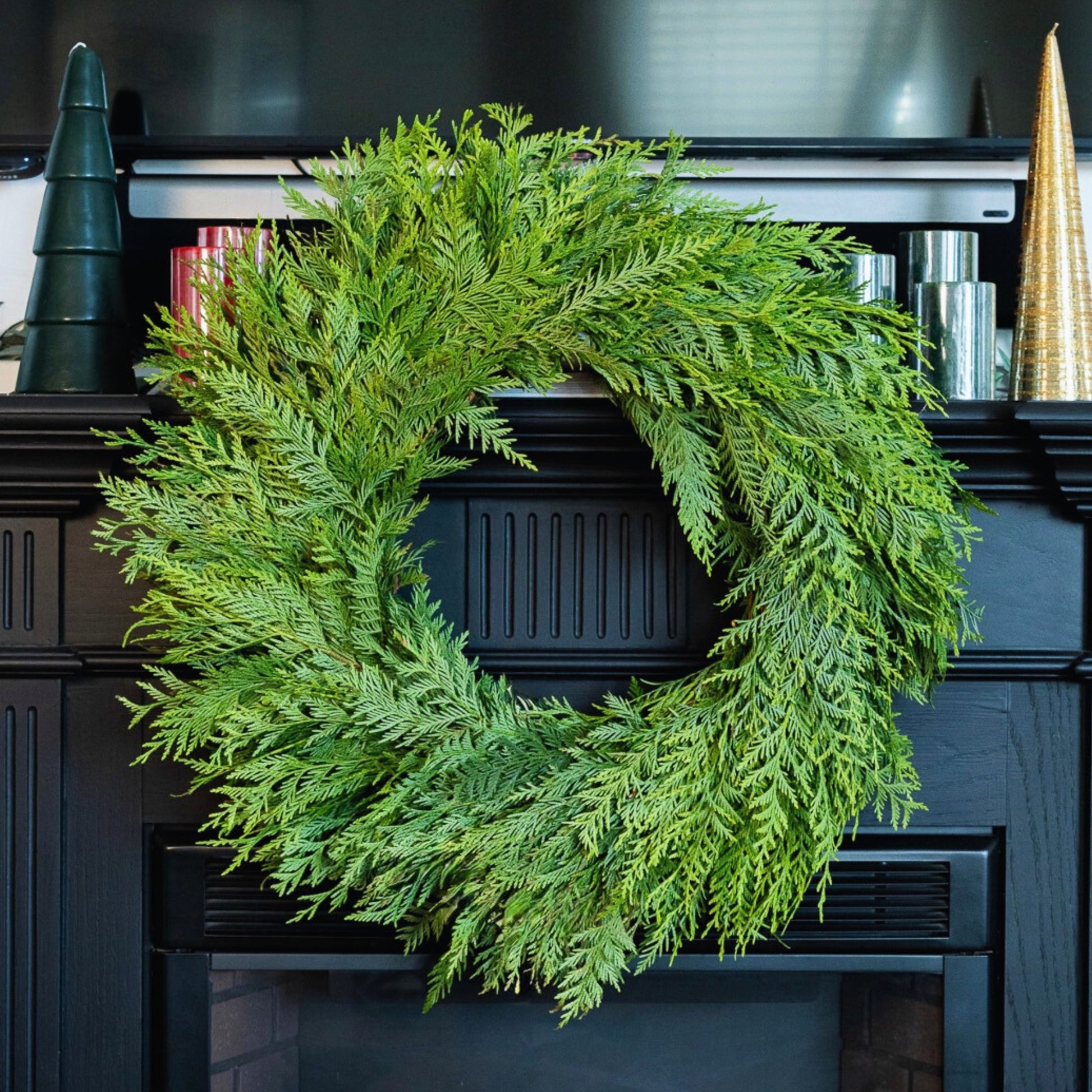 Made entirely from Western Red Cedar, this wreath feels alive with movement. Each branch drapes softly and catches the light just enough to bring warmth to even the coldest mornings. The fragrance is bright and woodsy with a hint of citrus, like stepping into a forest at sunrise.