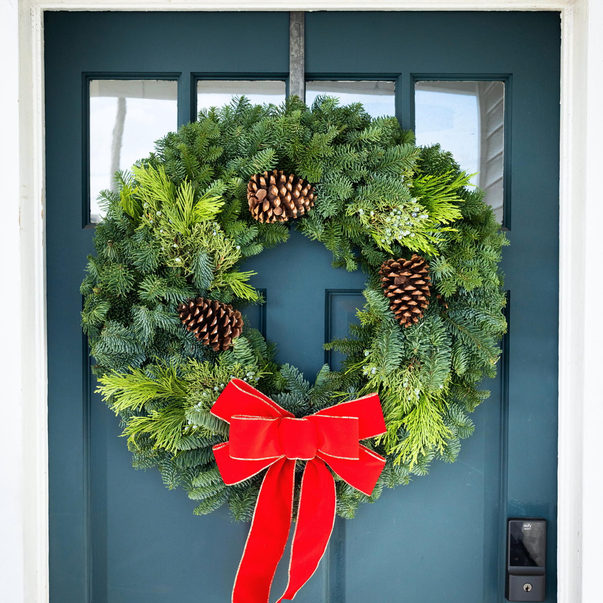 Each wreath is assembled within days of harvest and built to last, with fresh evergreens that hold their color and fragrance beautifully through the season.